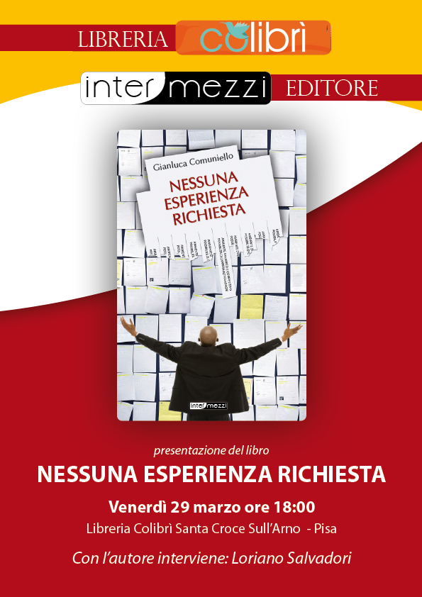 Venerdì 29 marzo alle ore 18 a Santa Croce Sull’Arno (PI) presso la libreria Colibrì in via Mazzini 131 sarà presentato Nessuna Esperienza Richiesta di Gianluca Comuniello.